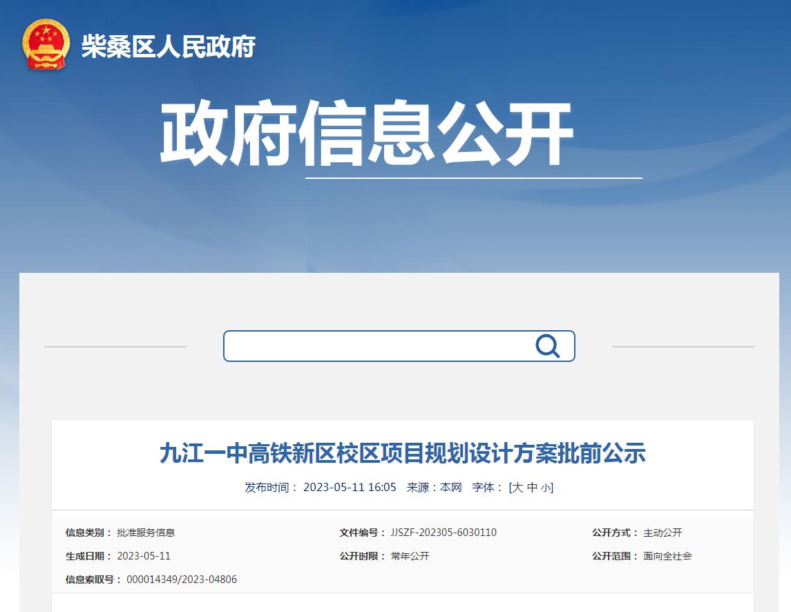 高鐵新區(qū)添新學校!九江一中高鐵新區(qū)校區(qū)項目規(guī)劃設(shè)計方案正在批前公示!